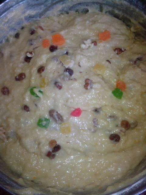 8) Добавить 6 ч.л. лимонной цедры, 2 ч.л. кардамона (порошок), 0.5 ч.л. молотого мускатного ореха, 3-4 ч.л. ванильного сахара, 50 г коньяка. Еще раз все вымешиваем и оставляем на 0.5-1 час.
