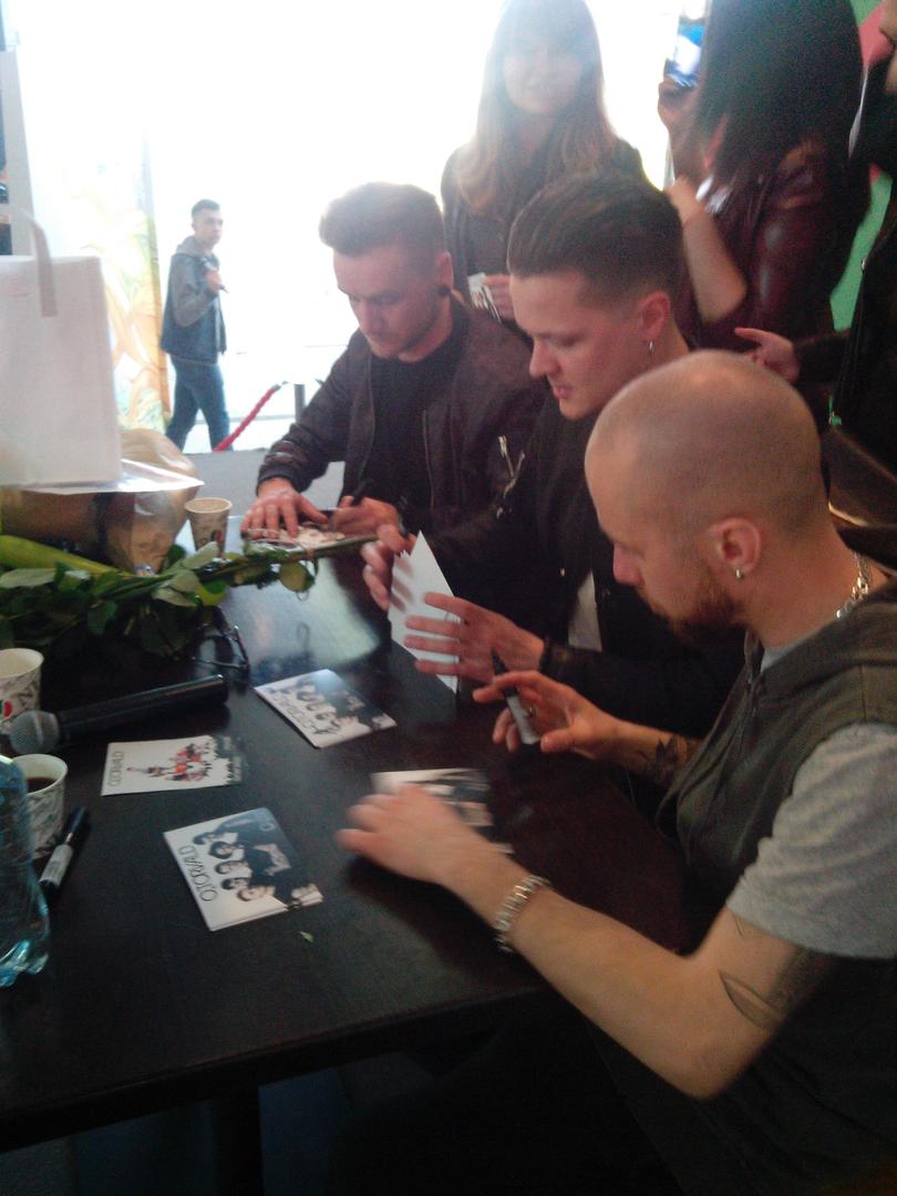 На странице группы в ФБ я узнала про автограф-сессию и навострила лыжи в Океан Плаза. ОТорвальда я открыла для себя года два назад на Просто Радио. Они активно их крутили. В прошлом году еще до Евровидения я все не могла решиться - идти на их концерт или нет, они как раз в туре были. Теперь вот жалею... Но ничего, осенью они опять стартуют в тур и теперь уж я точно попаду на их концерт!